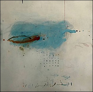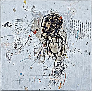 Indeed, Rashid was born in Iraq, where the mists of time cloak the earliest human writings we know of, cuneiform code systems from Sumer. Welling recounts Rashid telling him how his work began. Living under the savage dictatorship of Saddam Hussein, and a soldier in the war against Iran, Rashid was writing in his notebook when he realized his words could put his life in danger. So he began drawing over the text, “in the process of course making the text unreadable. Layer upon layer he created later on paintings like a palimpsest, a way of adding time to the essence of the work. Rashid developed a poetic use of signs which relates him to artists such as Antoni Tàpies and Joan Miró.”