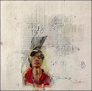 Tatsächlich wurde Rashid im Irak geboren, wo die Nebel der Zeit die frühesten uns bekannten menschlichen Schriften, Keilschriftcodesysteme aus Sumer, verhüllen. Welling erzählt, wie Rashid ihm erzählte, wie seine Arbeit begann. Rashid lebte unter der brutalen Diktatur von Saddam Hussein und war Soldat im Krieg gegen den Iran. Er schrieb gerade in sein Notizbuch, als er erkannte, dass seine Worte sein Leben in Gefahr bringen könnten. Also begann er, den Text zu zeichnen, „wobei er den Text natürlich unleserlich machte. Schicht für Schicht schuf er später Gemälde wie ein Palimpsest, um dem Wesen der Arbeit Zeit zu verleihen. Rashid entwickelte eine poetische Verwendung von Zeichen, die ihn mit Künstlern wie Antoni Tàpies und Joan Miró in Verbindung bringt.