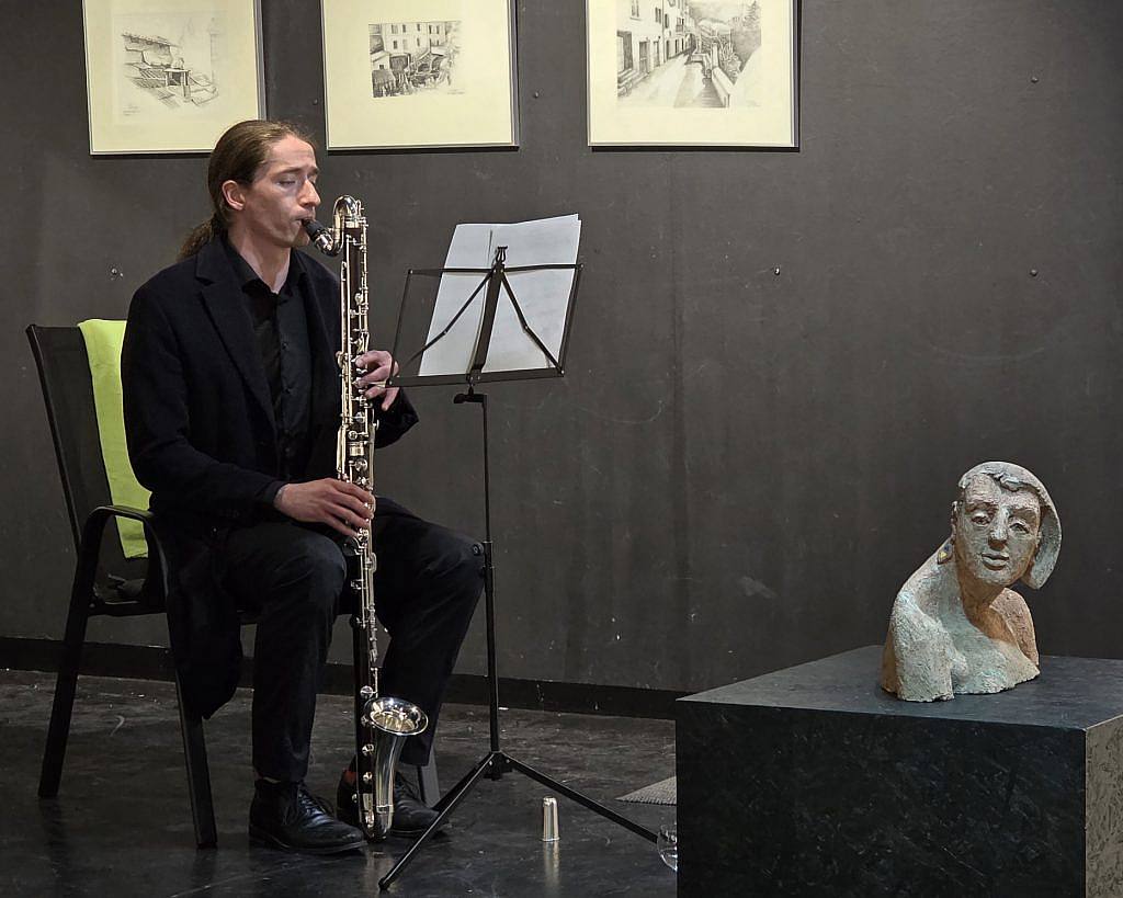 Den musikalischen Rahmen gestaltet Jannis Riß an der Bassklarinette.
