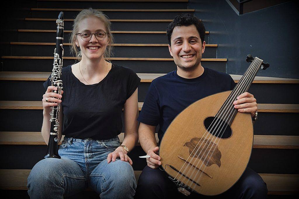 Sami Mustafa (Gesang & Oud) und Charlotte Freymuth (Klarinette) verbinden in ihrer Musik orientalische Melodien mit westlicher Klangsprache. Gemeinsam erschaffen sie eine poetische Klangwelt zwischen Tradition und Moderne – ein Dialog zwischen Kulturen, getragen von improvisatorischer Spielfreude und musikalischer Tiefe.
