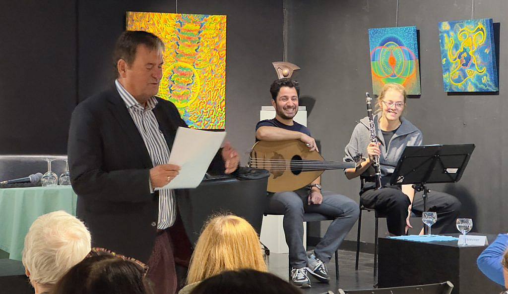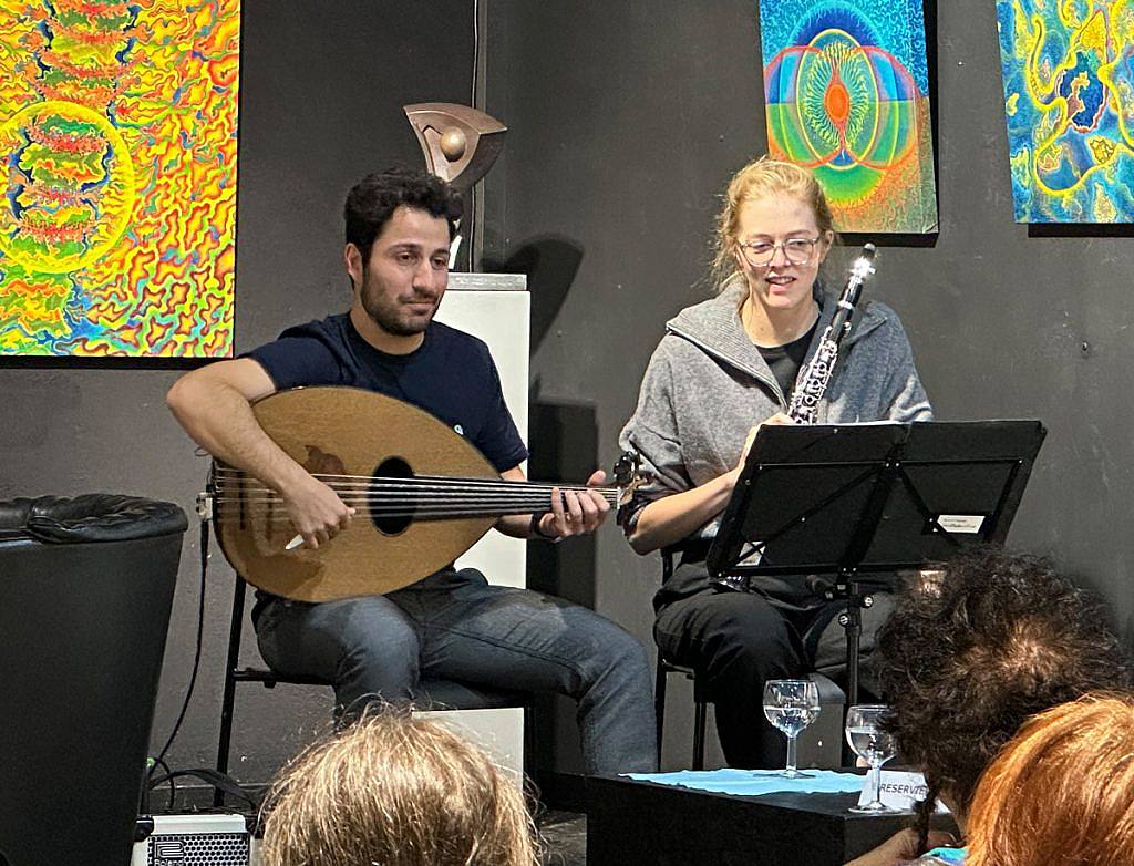 Sami Mustafa (Gesang & Oud) und Charlotte Freymuth (Klarinette) verbinden in ihrer Musik orientalische Melodien mit westlicher Klangsprache. Gemeinsam erschaffen sie eine poetische Klangwelt zwischen Tradition und Moderne – ein Dialog zwischen Kulturen, getragen von improvisatorischer Spielfreude und musikalischer Tiefe.
